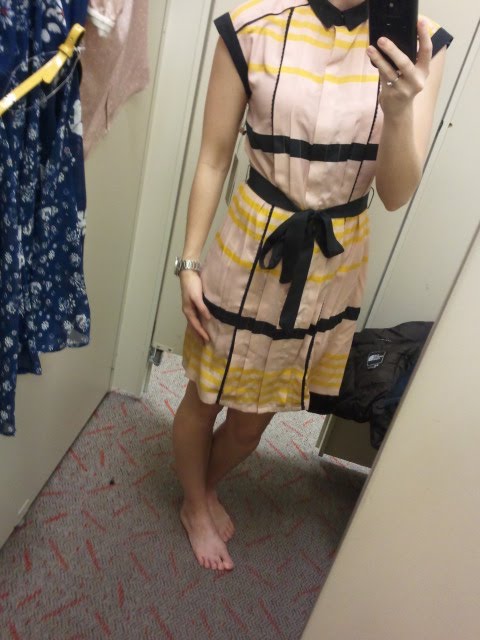 I got up bright and early and hit 2 Target stores close to me. I got the black pleated skirt, the pink dress you 'gave' up and the navy poplin dress that has the red and pink-ish stripes at the bottom. I heard that Target is going to replenish their stock online sometime later this week. I am keeping my eyes peeled because I wanted two things that only were online and sold out fast!