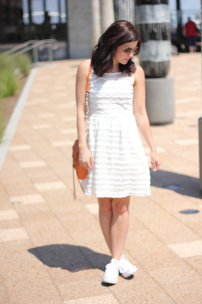 I love the all white with the converse! Such a fun look for a busy Saturday. The detailing on the dress is also gorgeous!